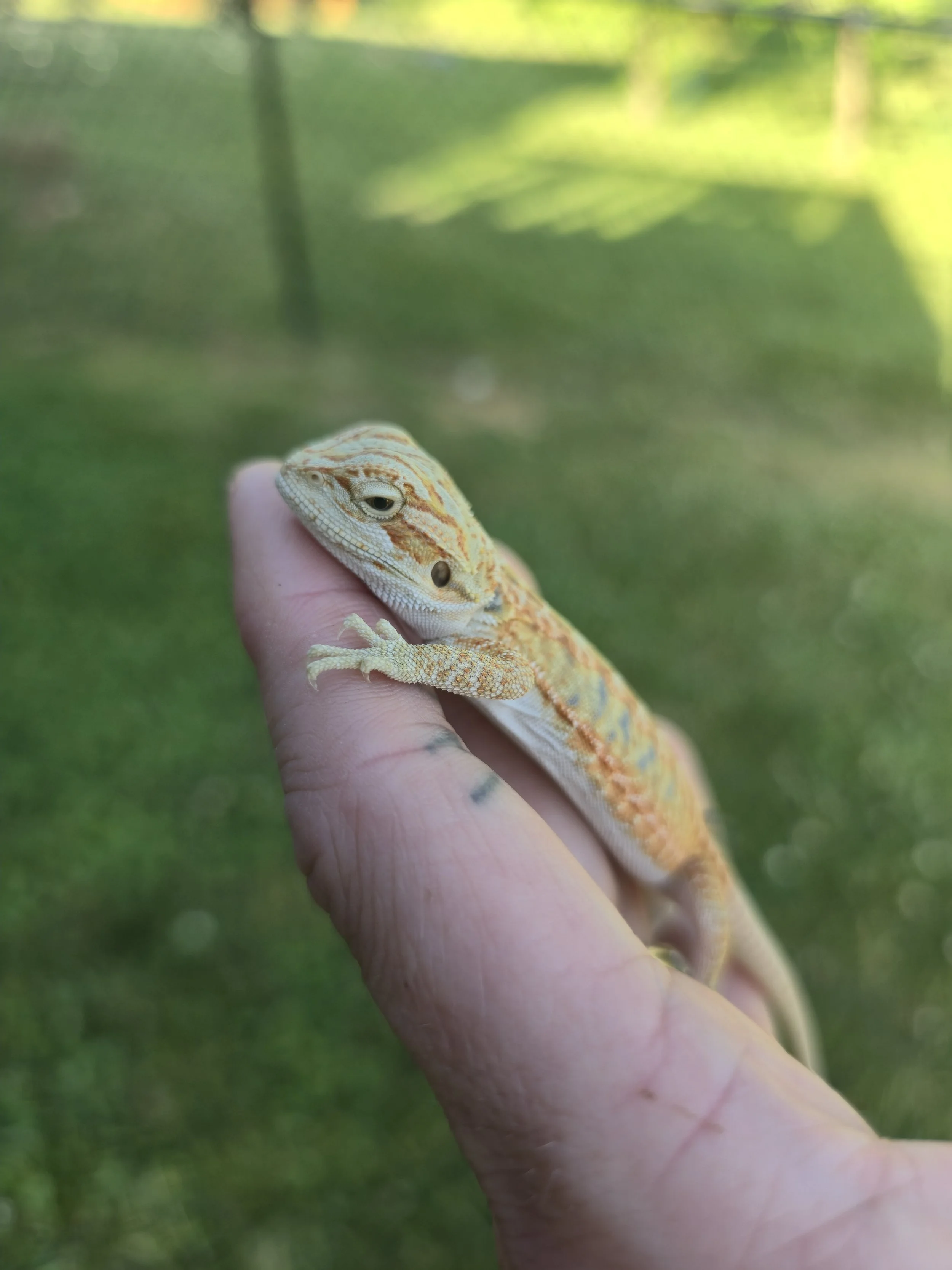 Gorgeous boy is around 15 grams and hatched 3/14/2026. He's is 66% triple het so great odds for breeding or just a stunning pet!