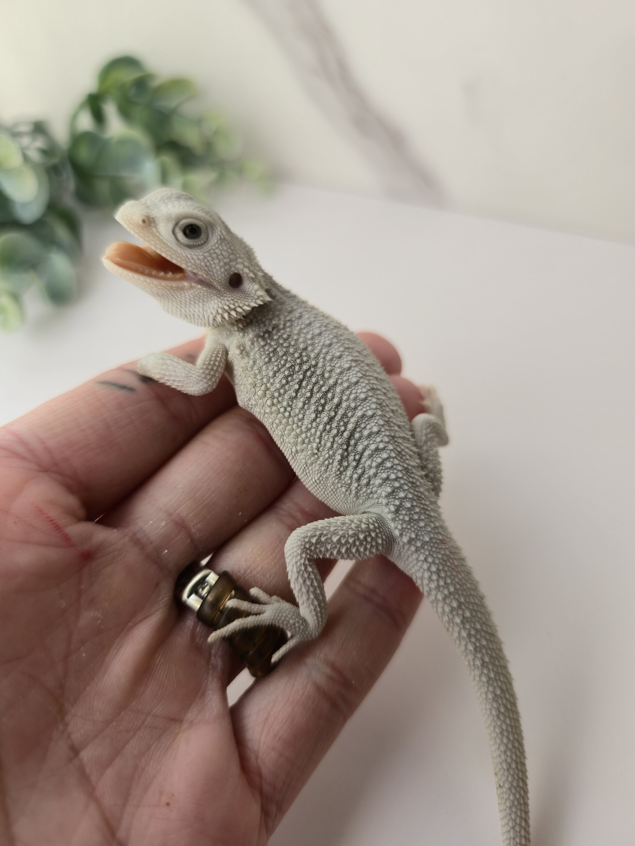 This is Sol 🥹 He is a feisty little boy who lost a complete front left hand. He is healed and BOY does he move around! He is quick lol. His healed injury does not slow him down! He's eats great and bigger than most of his siblings. You may not want to give him high surfaces because he will honestly only have one front hand for gripping. Hatched 9/8/25