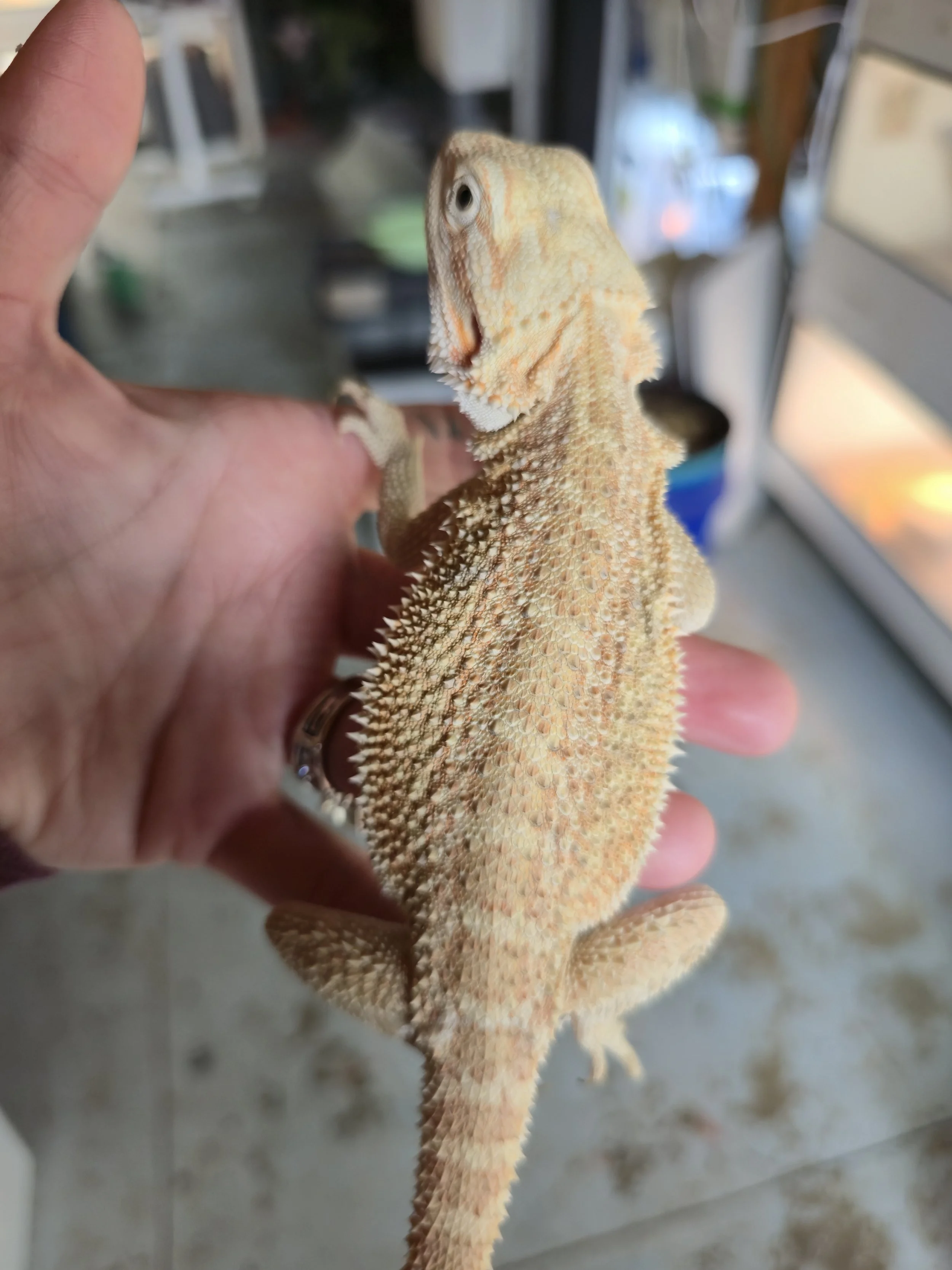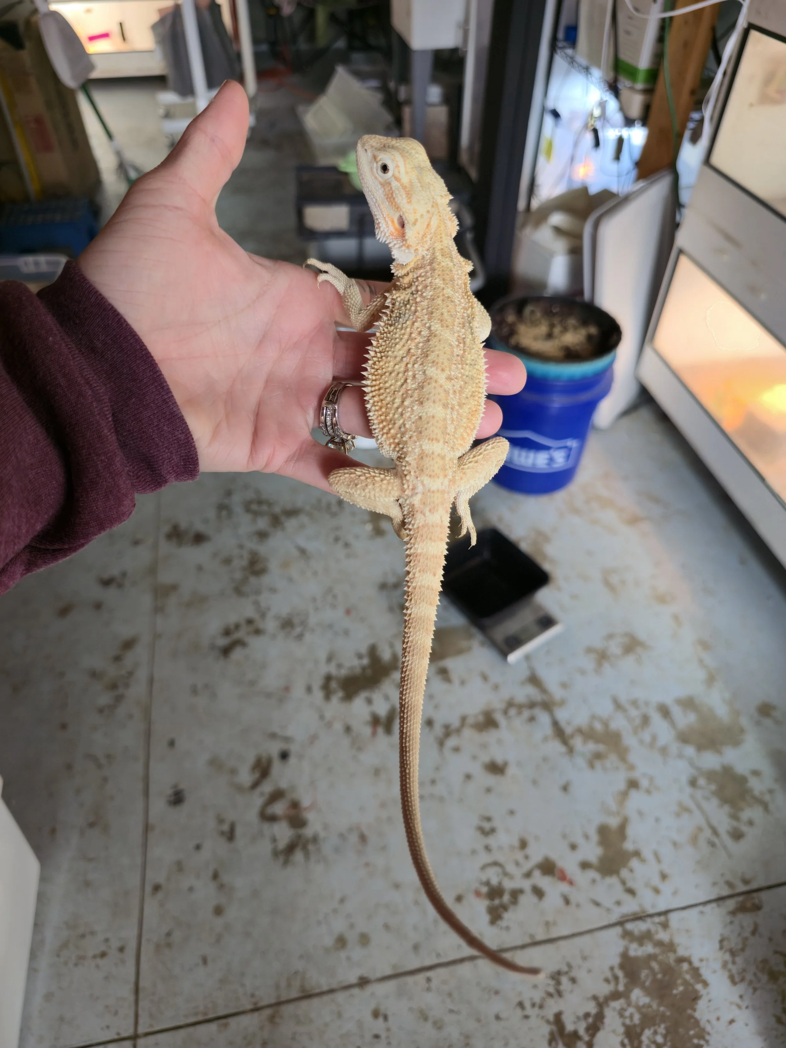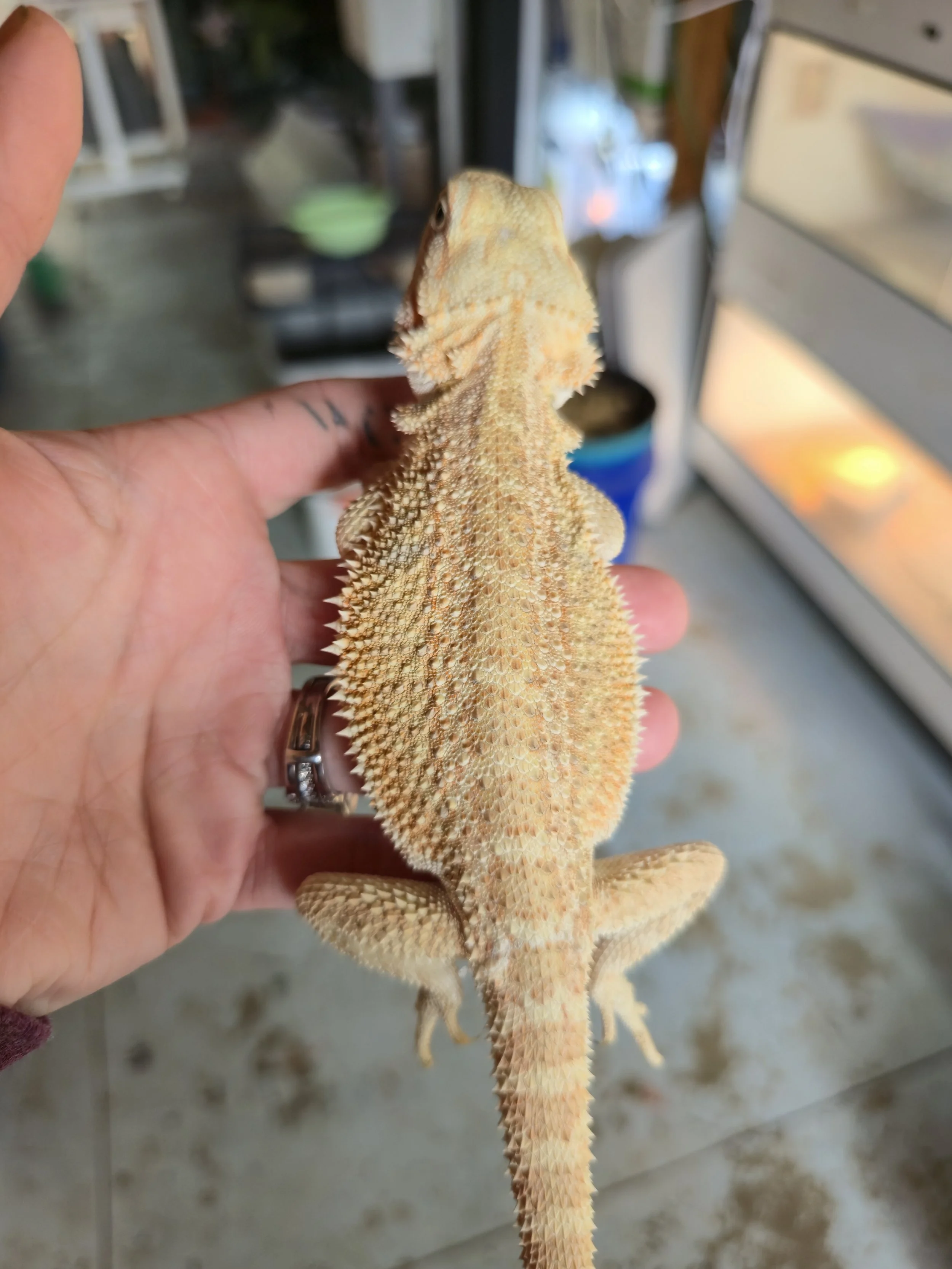 Weighing 68 grams and hatched 8/15/2025 from Ivy Mae and Brecken. Tip of tail is nipped but has been healed for many months. She has a big personality and lots of energy. Very food motivated and a little on the wild side but just enough to not be feral lol. She's gorgeous!