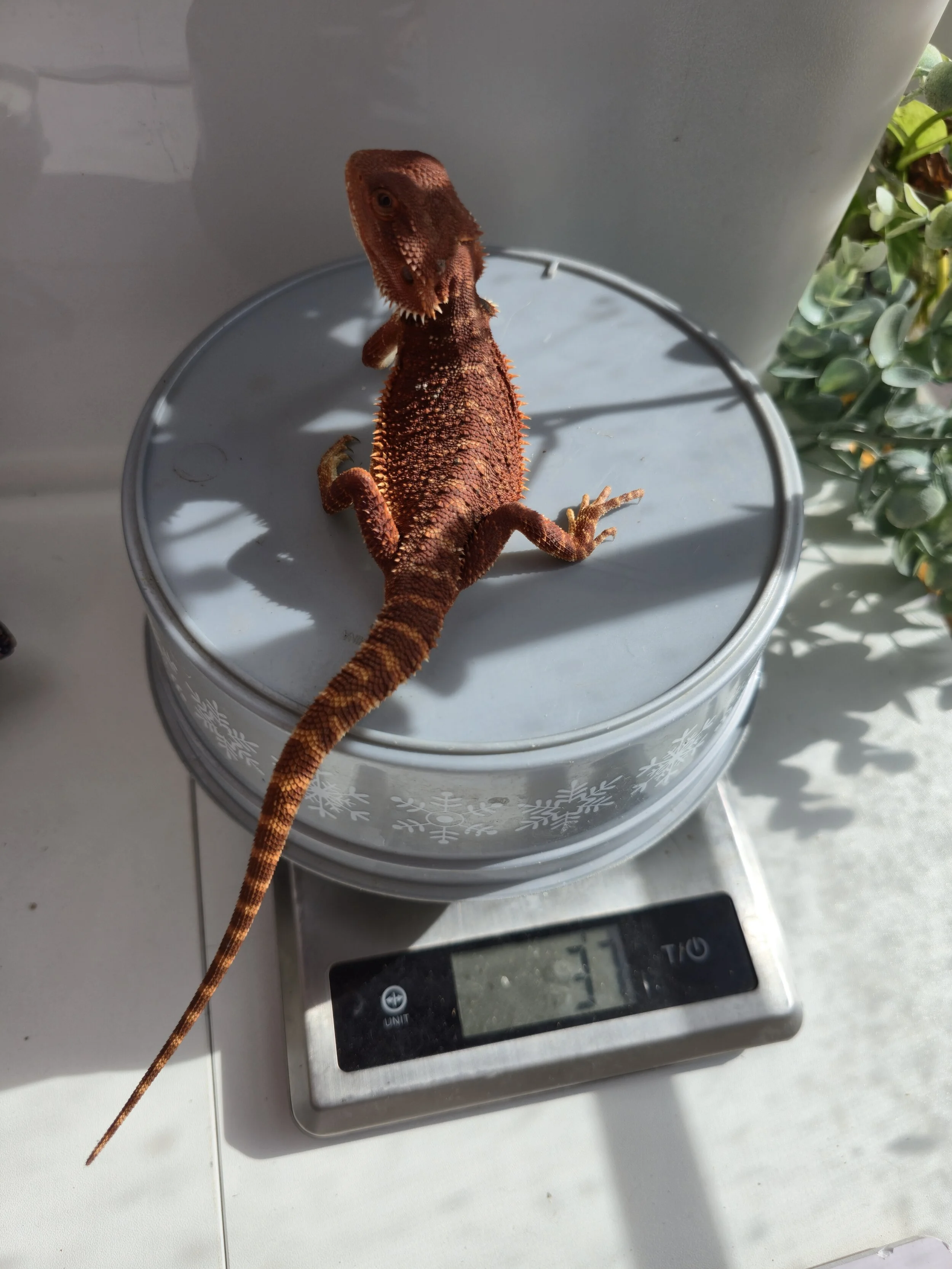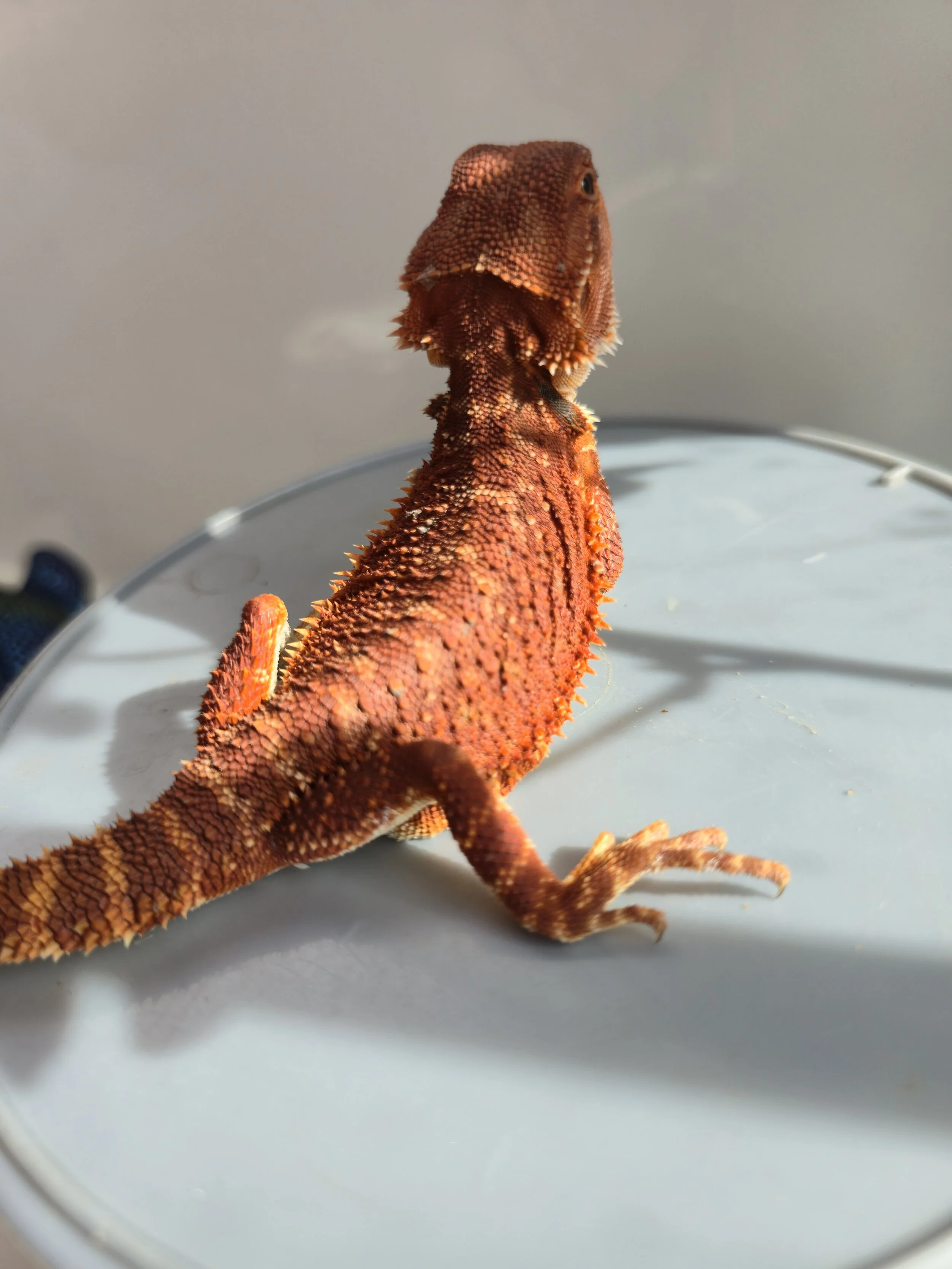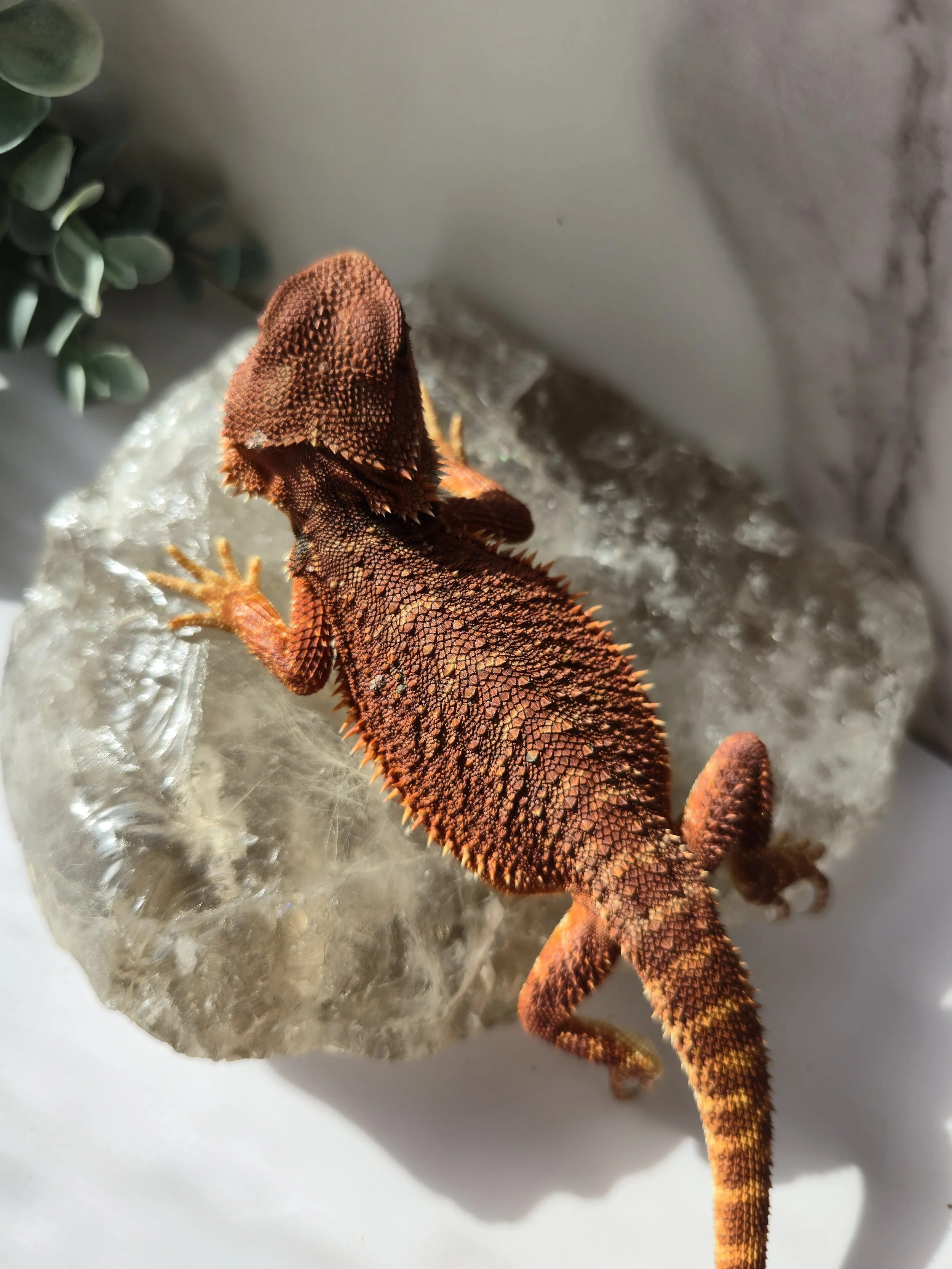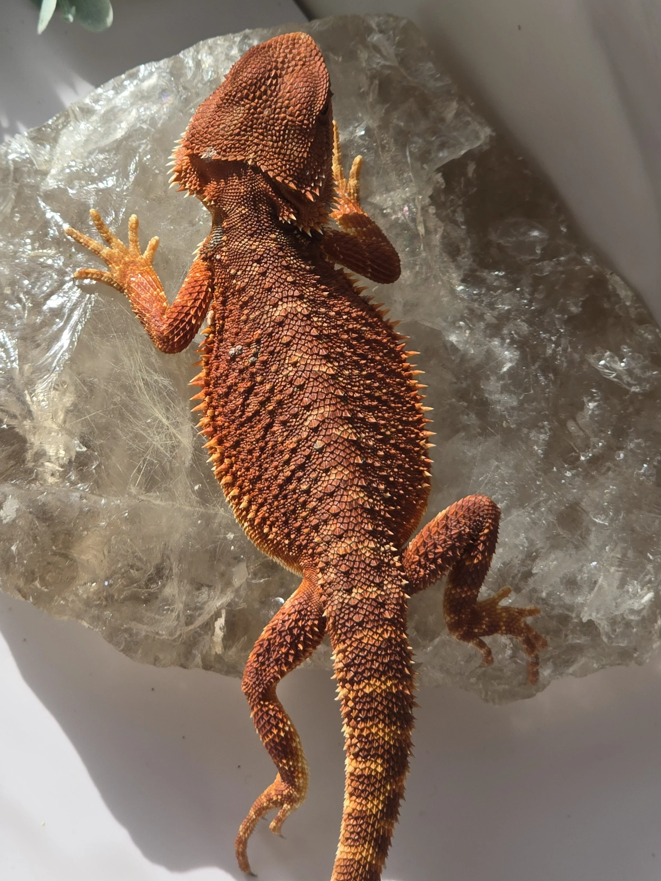 Absolutely stunning dragon. She hatched on 7/11/2025 and is very sweet and well started! She is a gorgeous dark maroon shade of red