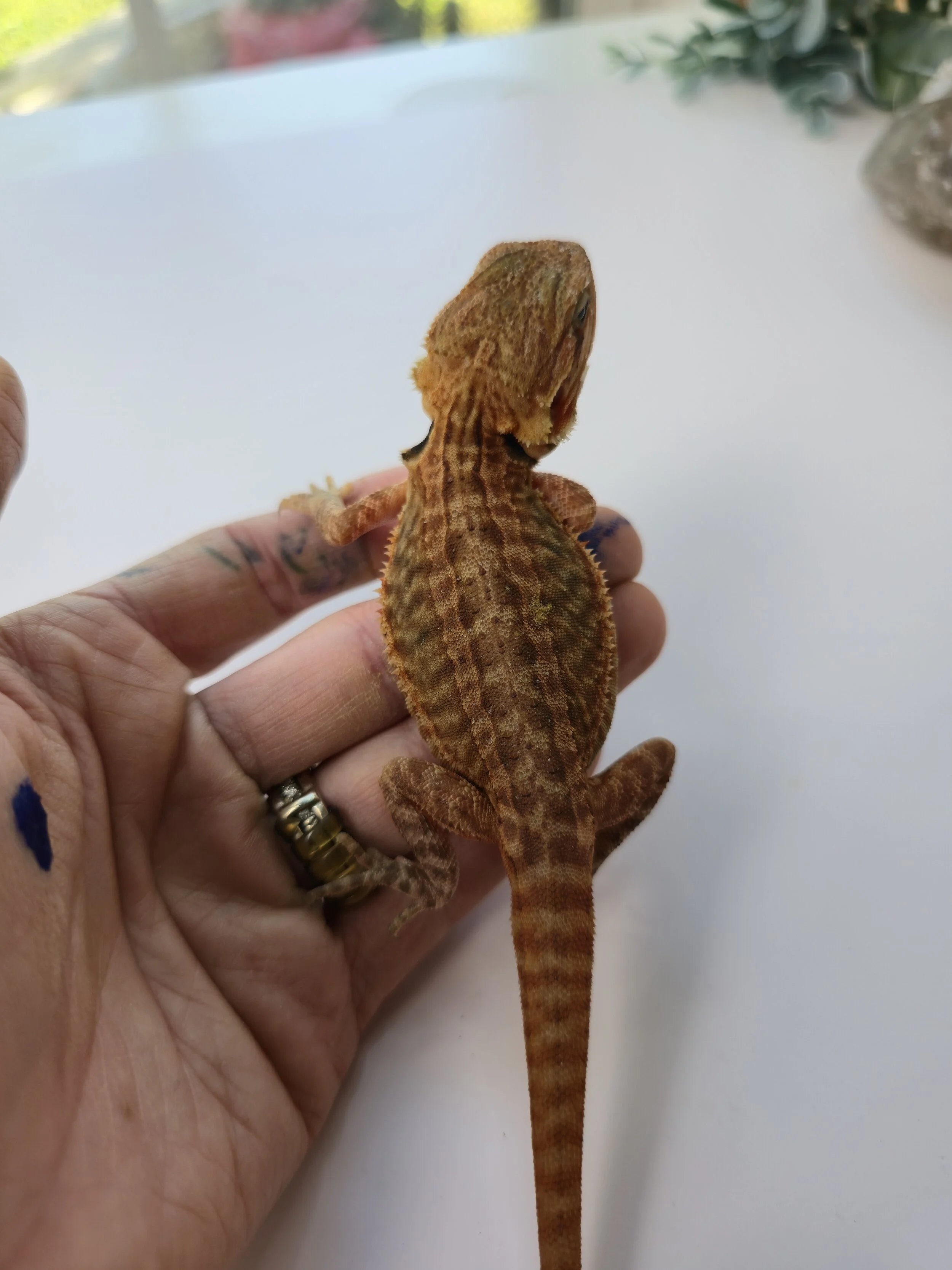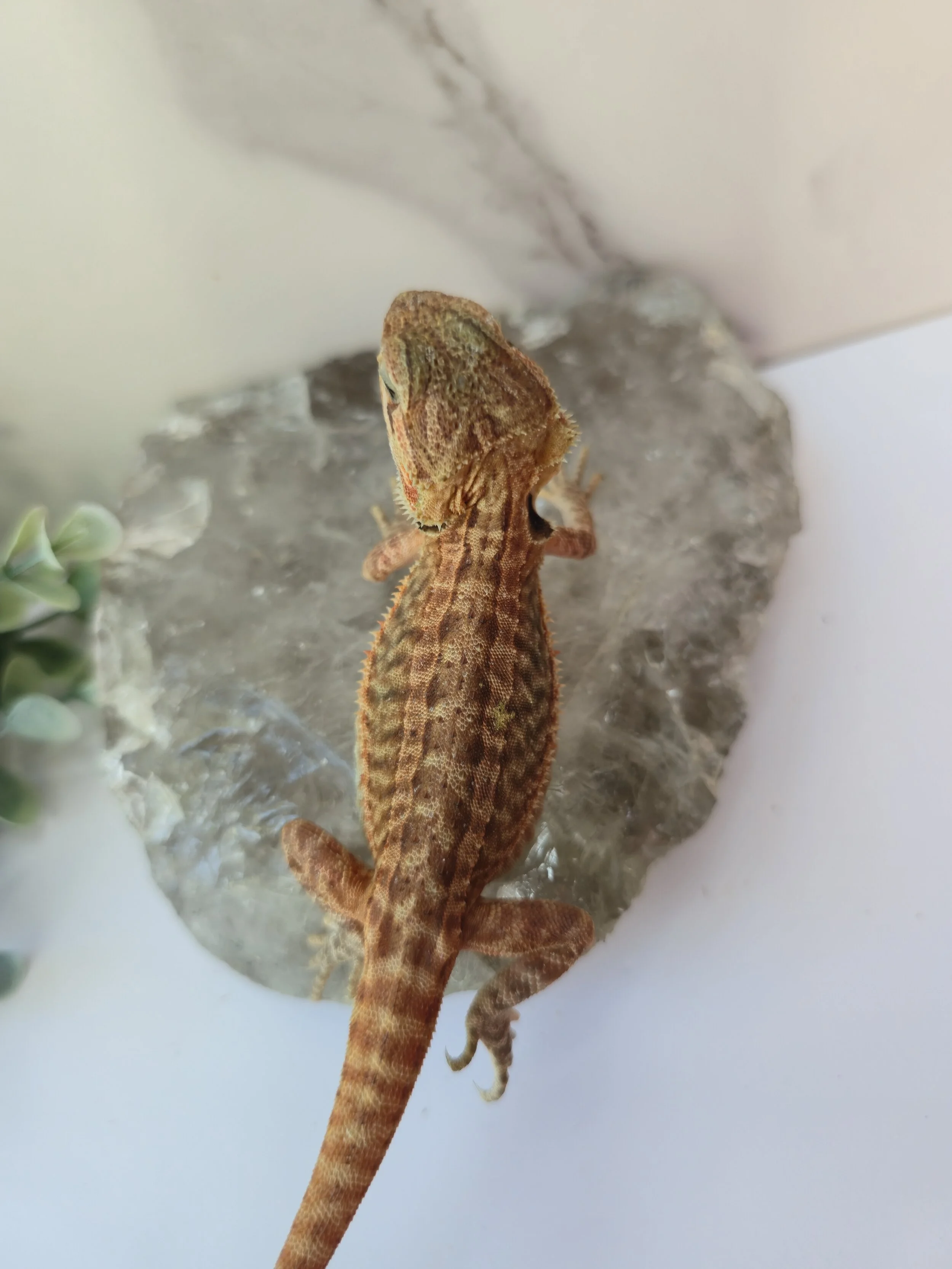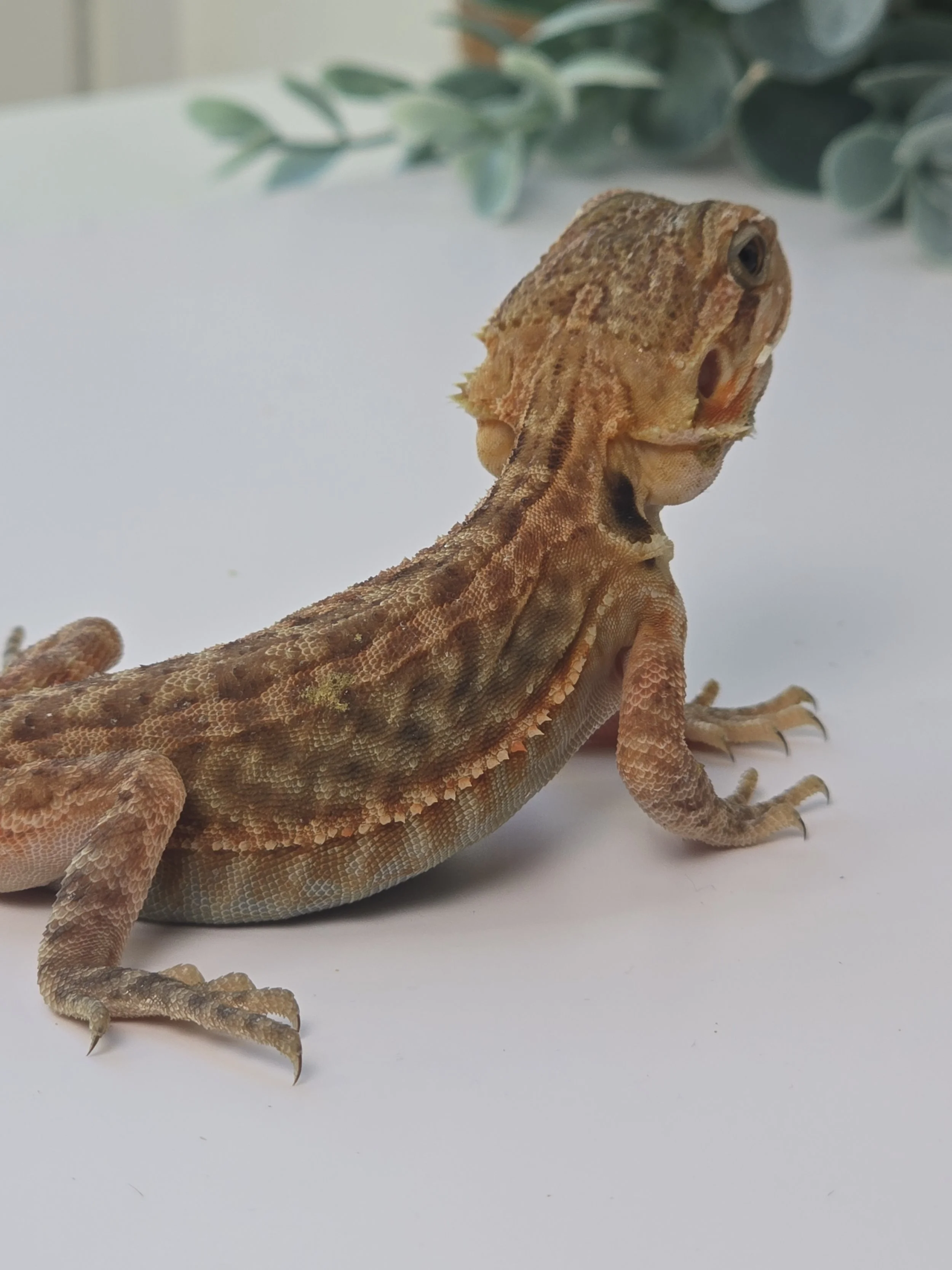 Dragons › Peoni • female translucent leatherback genetic stripe 66% het witblits 100% het hypo Peoni • female translucent leatherback genetic stripe 66% het witblits 100% het hypo $150.00 From Braum and Miss Grinch, this little cutie hatched 7/28/2025 From Braum and Miss Grinch, this little cutie hatched 7/28/2025 Purchase Added!