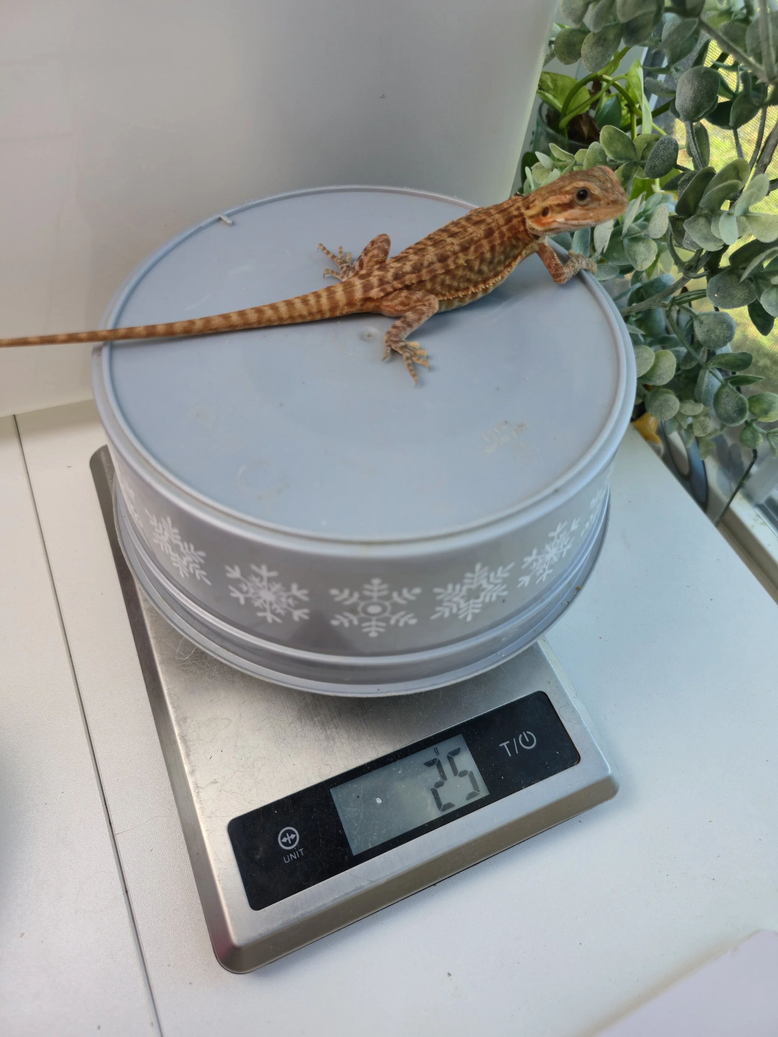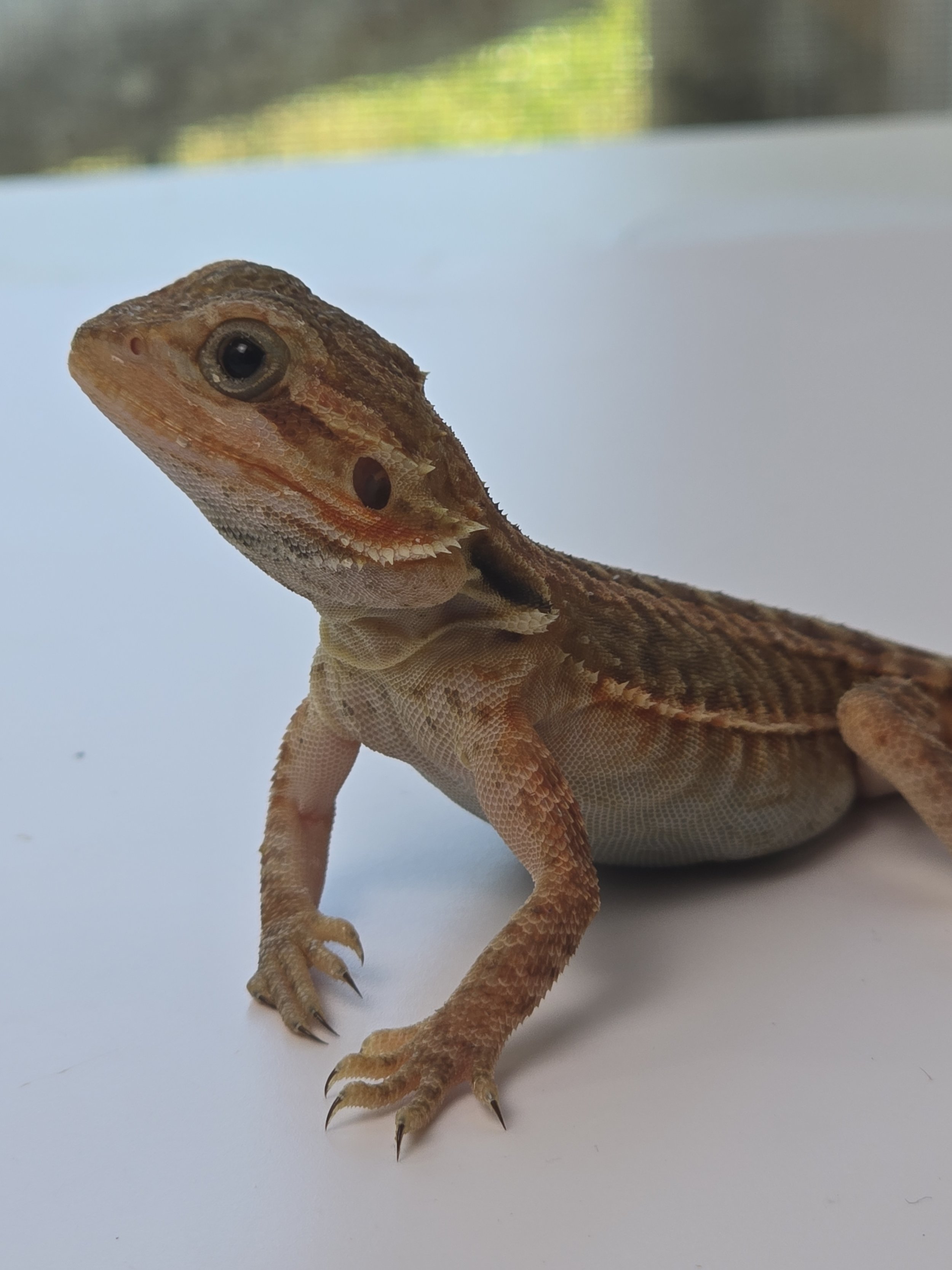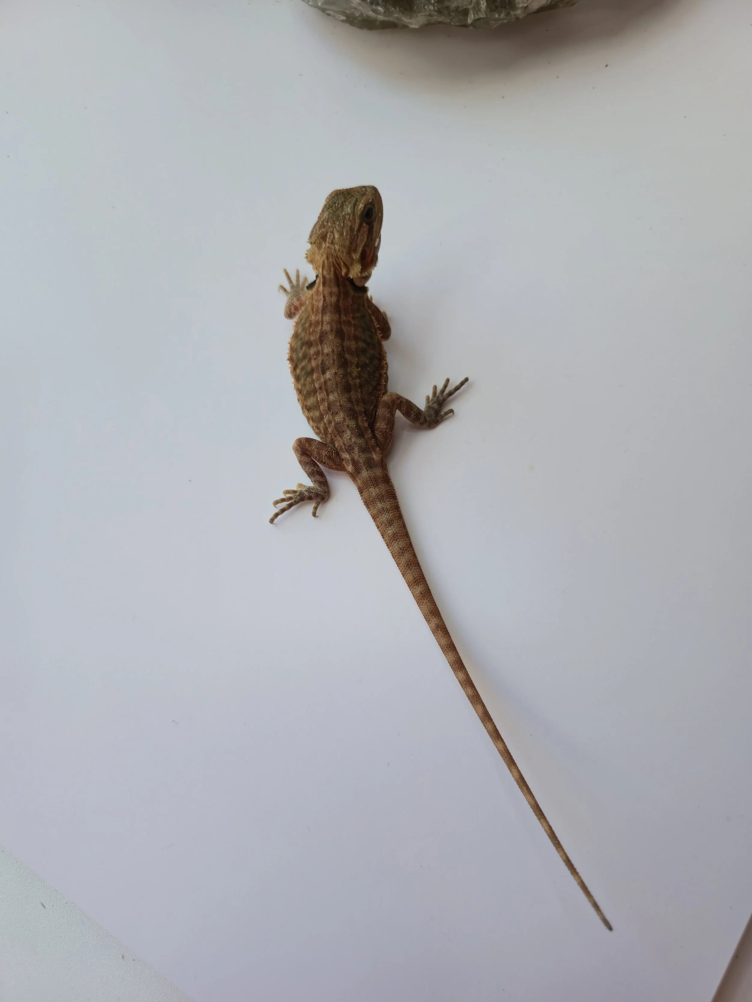 Dragons › Peoni • female translucent leatherback genetic stripe 66% het witblits 100% het hypo Peoni • female translucent leatherback genetic stripe 66% het witblits 100% het hypo $150.00 From Braum and Miss Grinch, this little cutie hatched 7/28/2025 From Braum and Miss Grinch, this little cutie hatched 7/28/2025 Purchase Added!