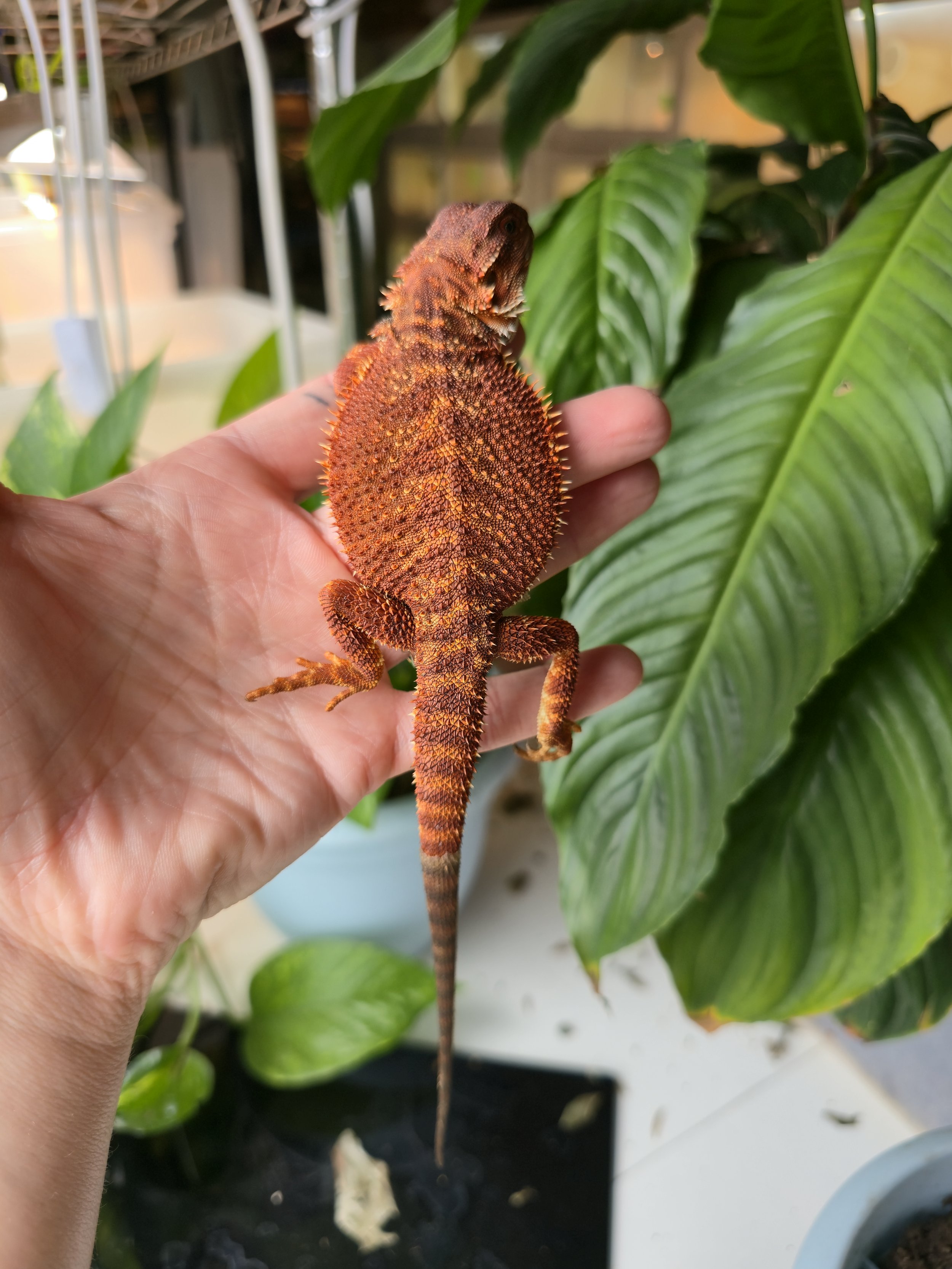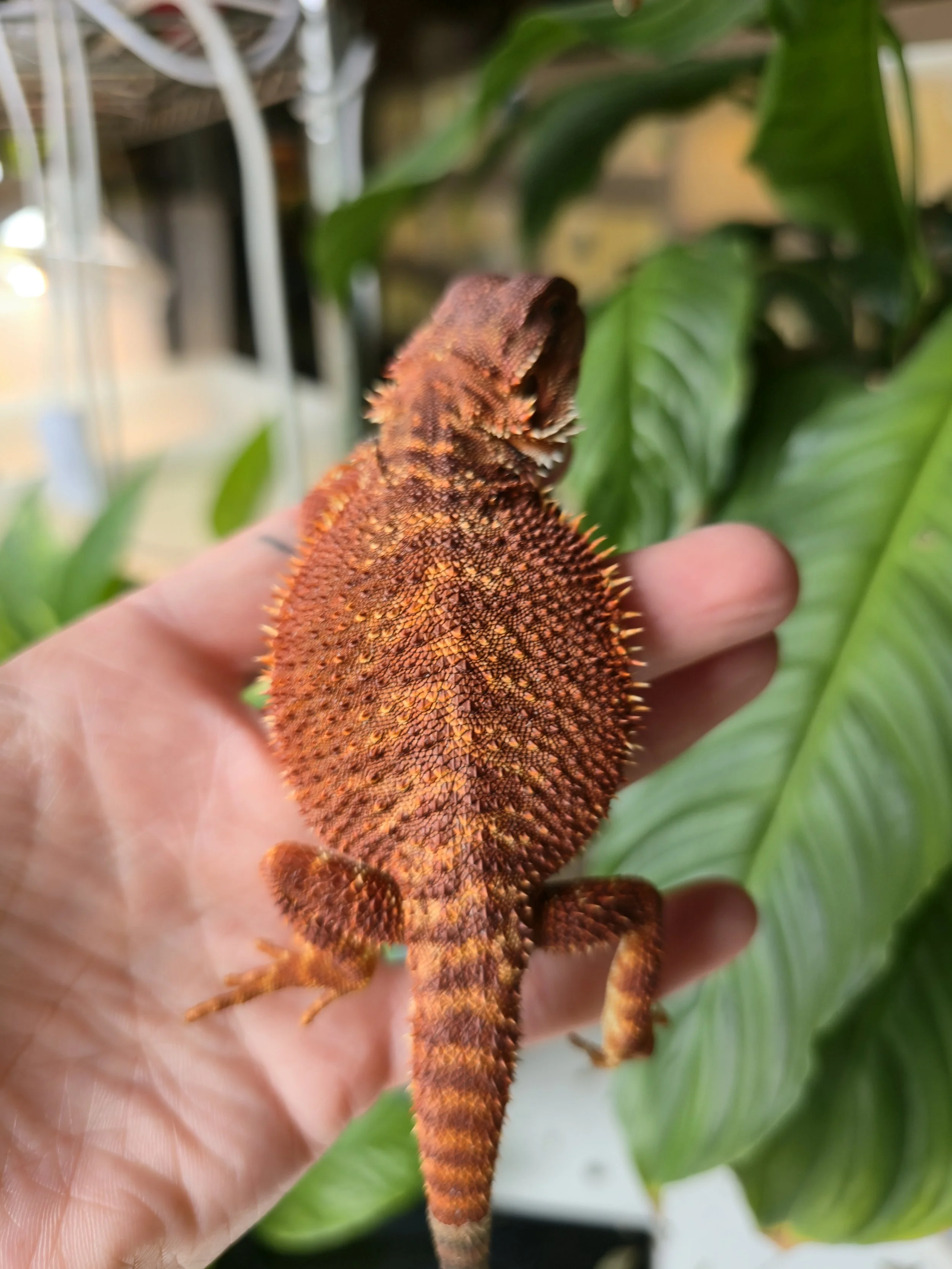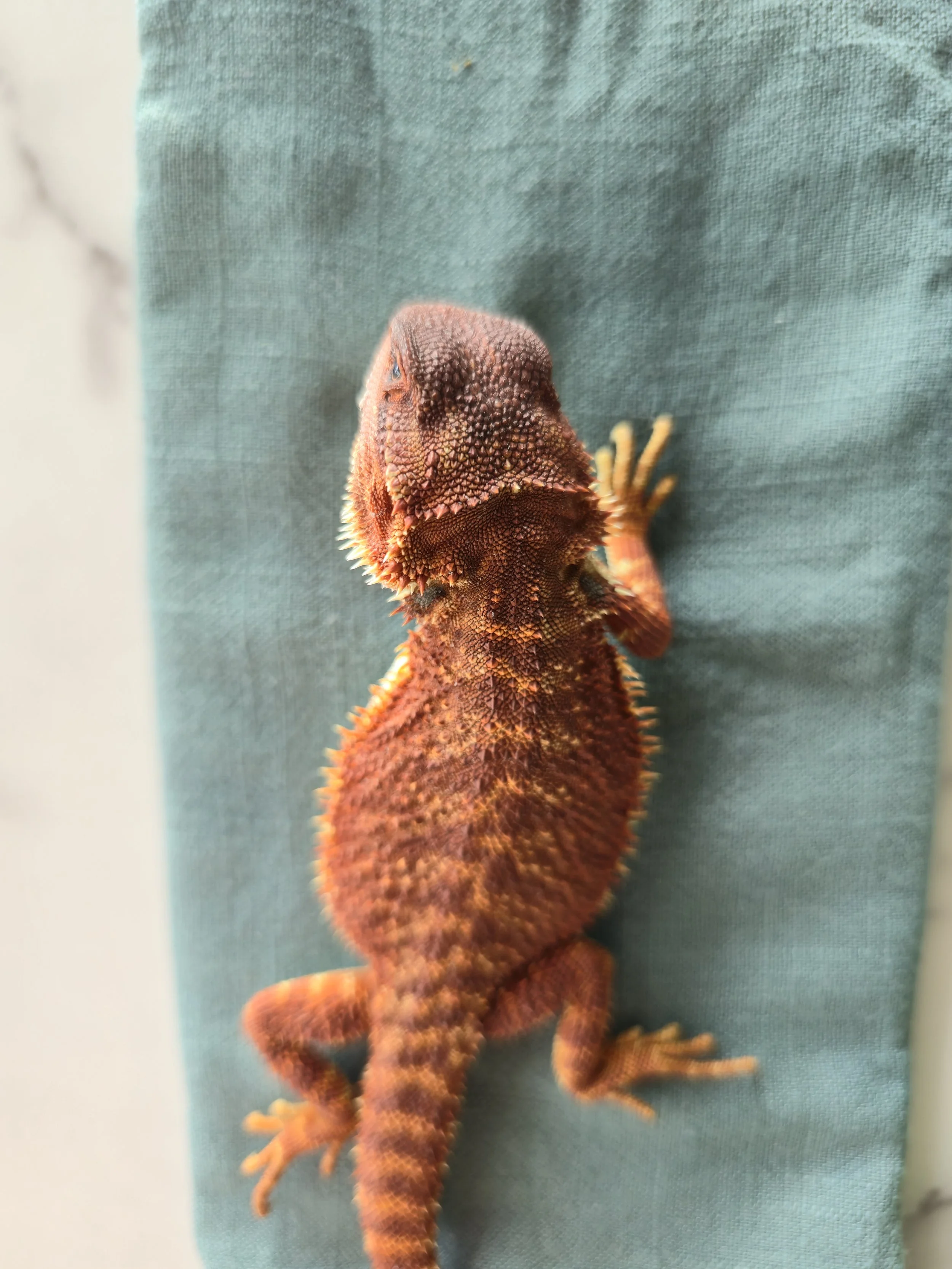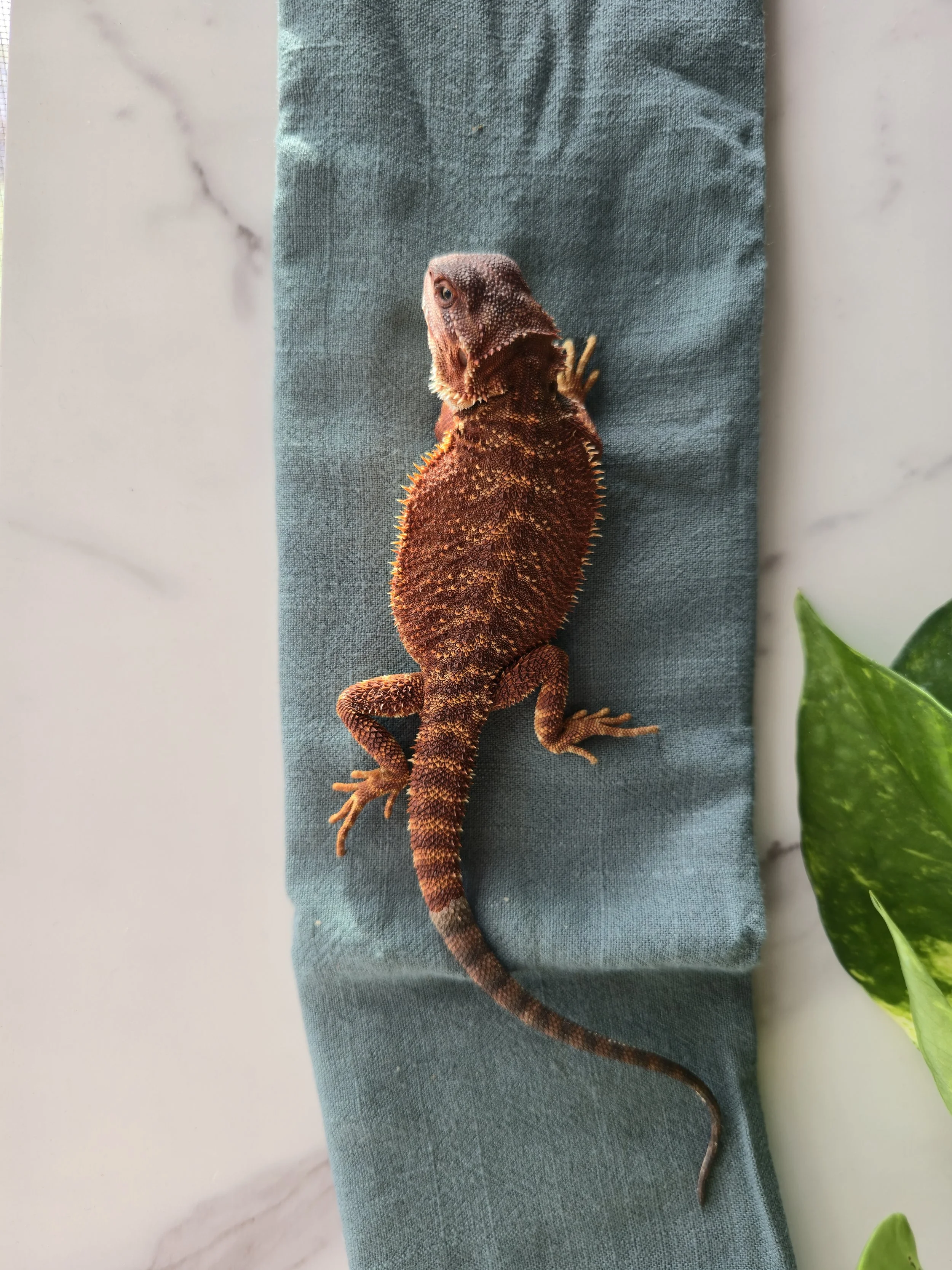 Hatched from Freya and Loki. Freya was imported from Tawaiin. I love this beautiful boy! I wanted to develop his color more before posting him. He hatched on 9/24/2025 and is very easy to handle! He would make a very gorgeous pet and will only get darker as he ages (: