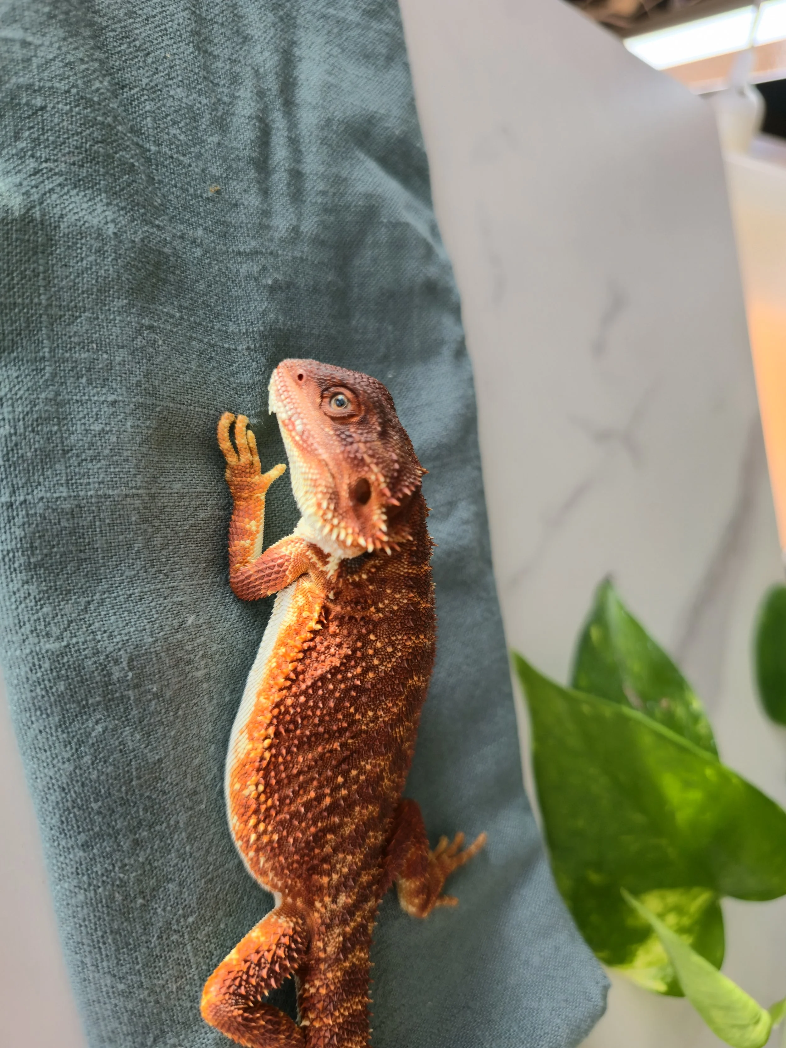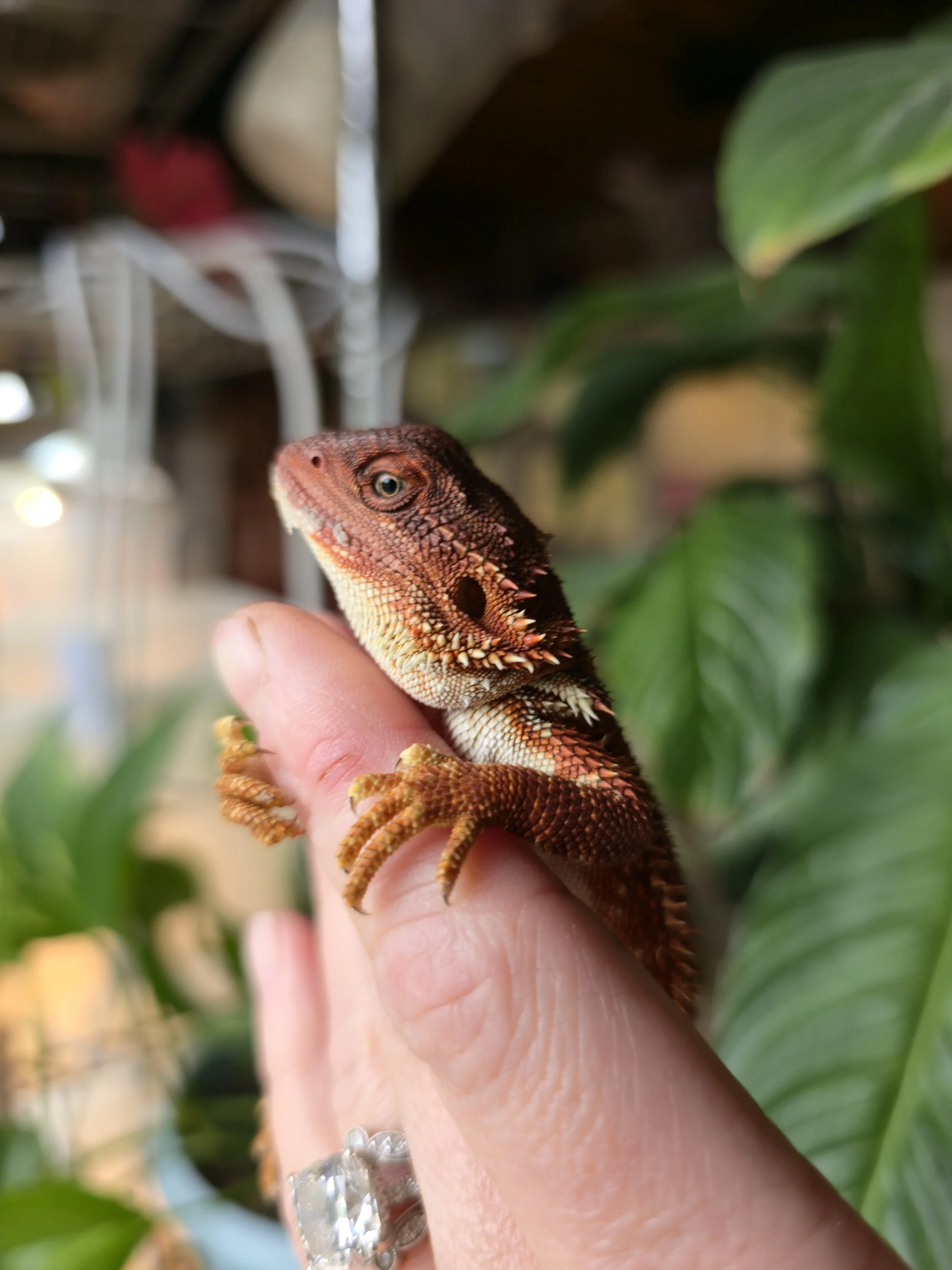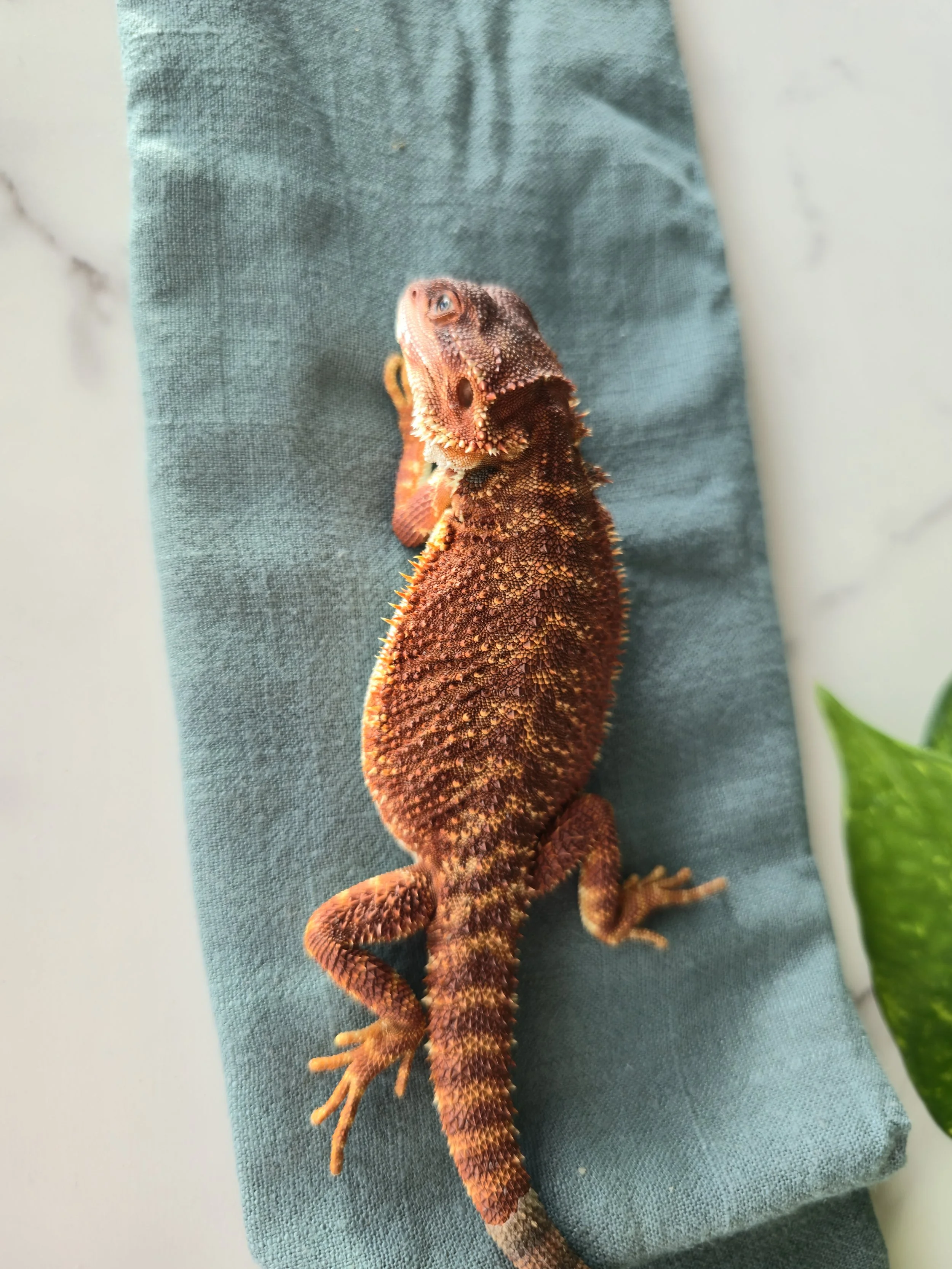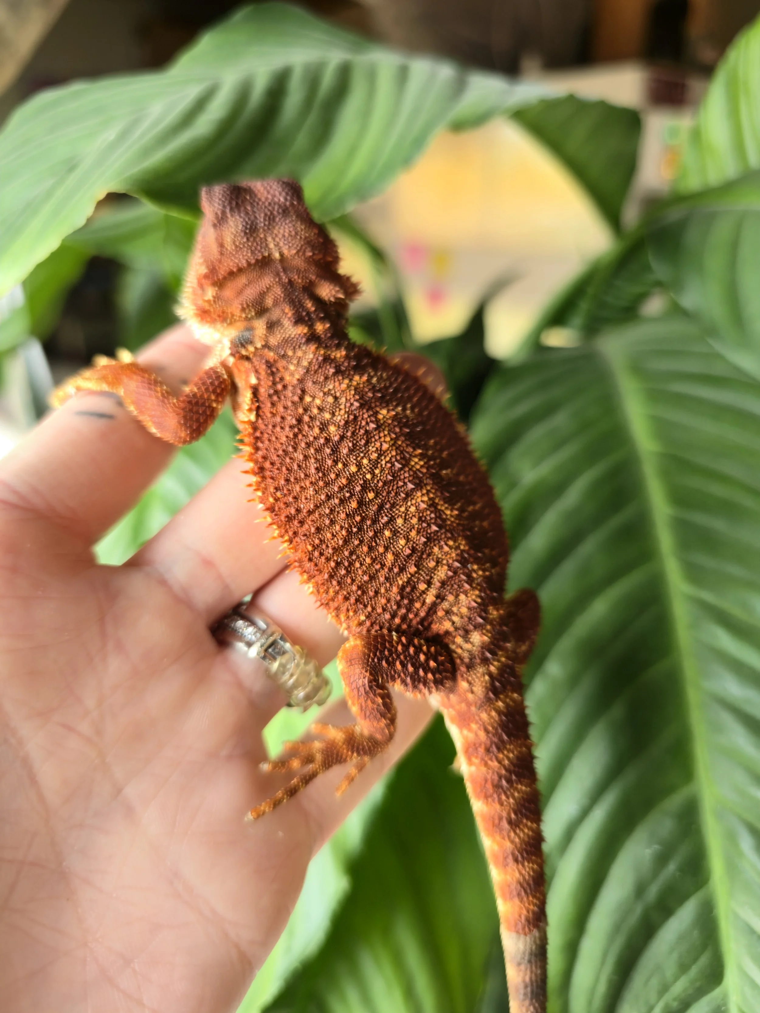 Hatched from Freya and Loki. Freya was imported from Tawaiin. I love this beautiful boy! I wanted to develop his color more before posting him. He hatched on 9/24/2025 and is very easy to handle! He would make a very gorgeous pet and will only get darker as he ages (: