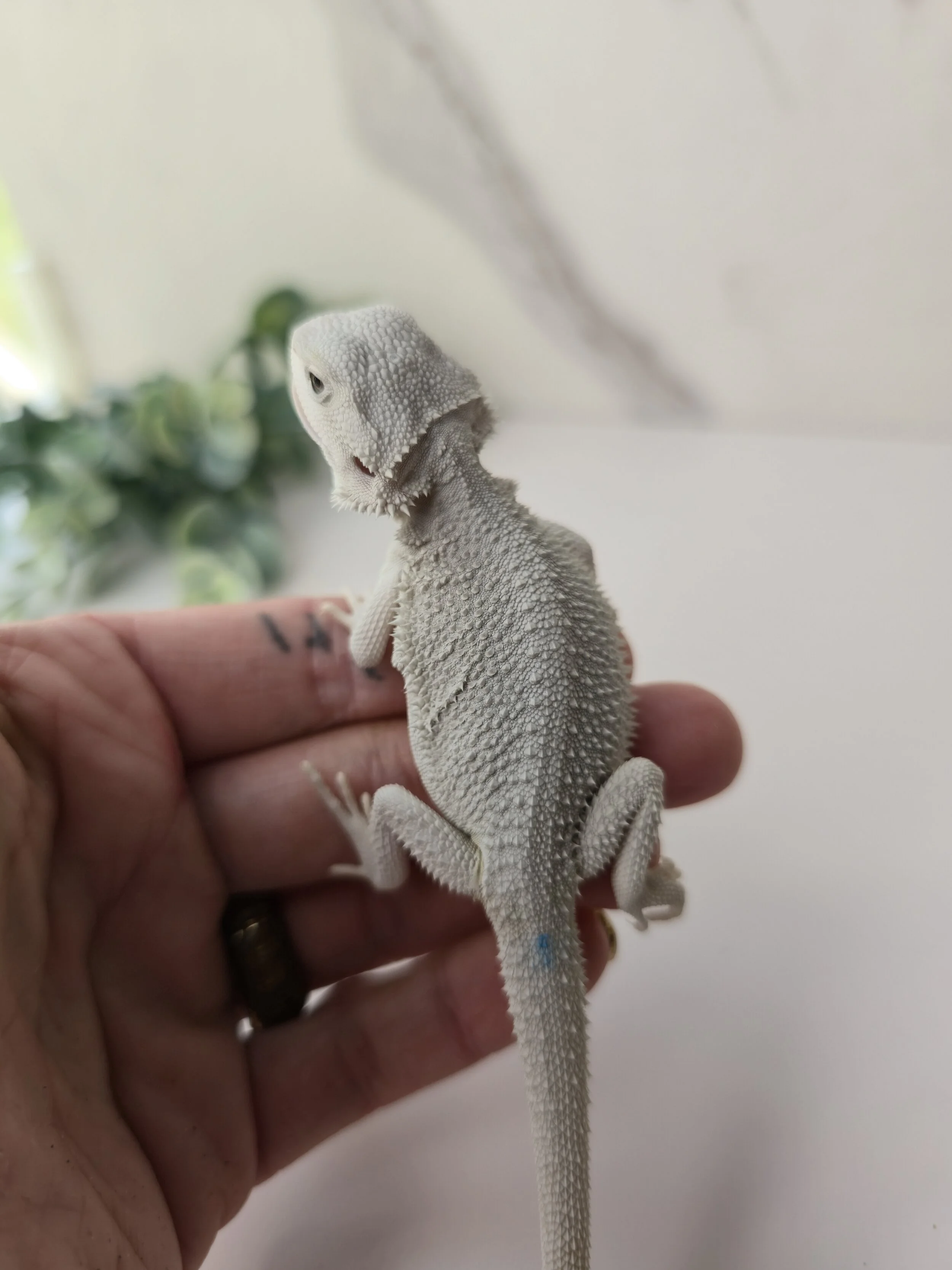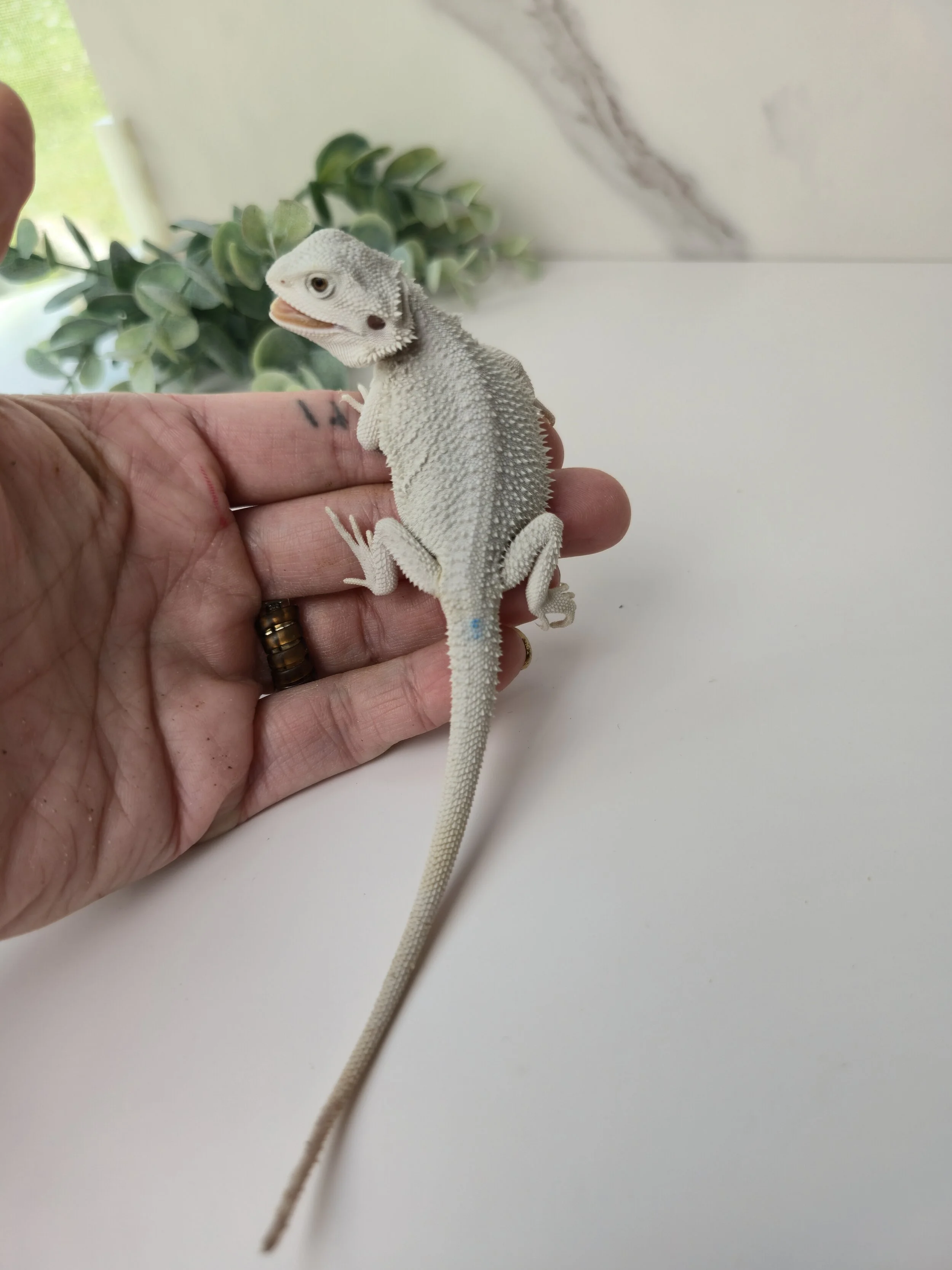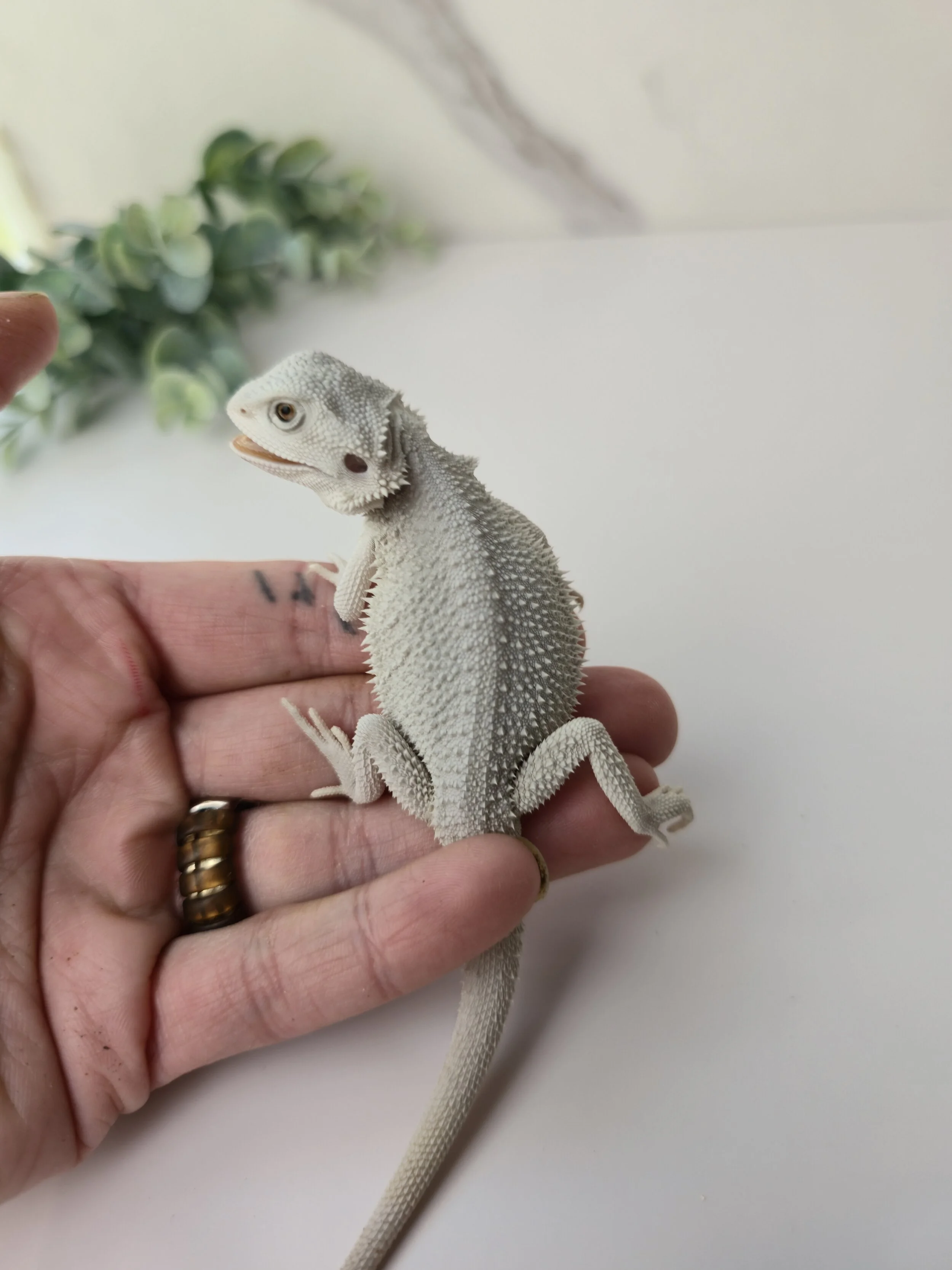 This fireball hatched on 9/8/2025 and is doing great! His tail is minorly nipped so he is discounted for the minor healed injury. He is doing great! Tons of energy!