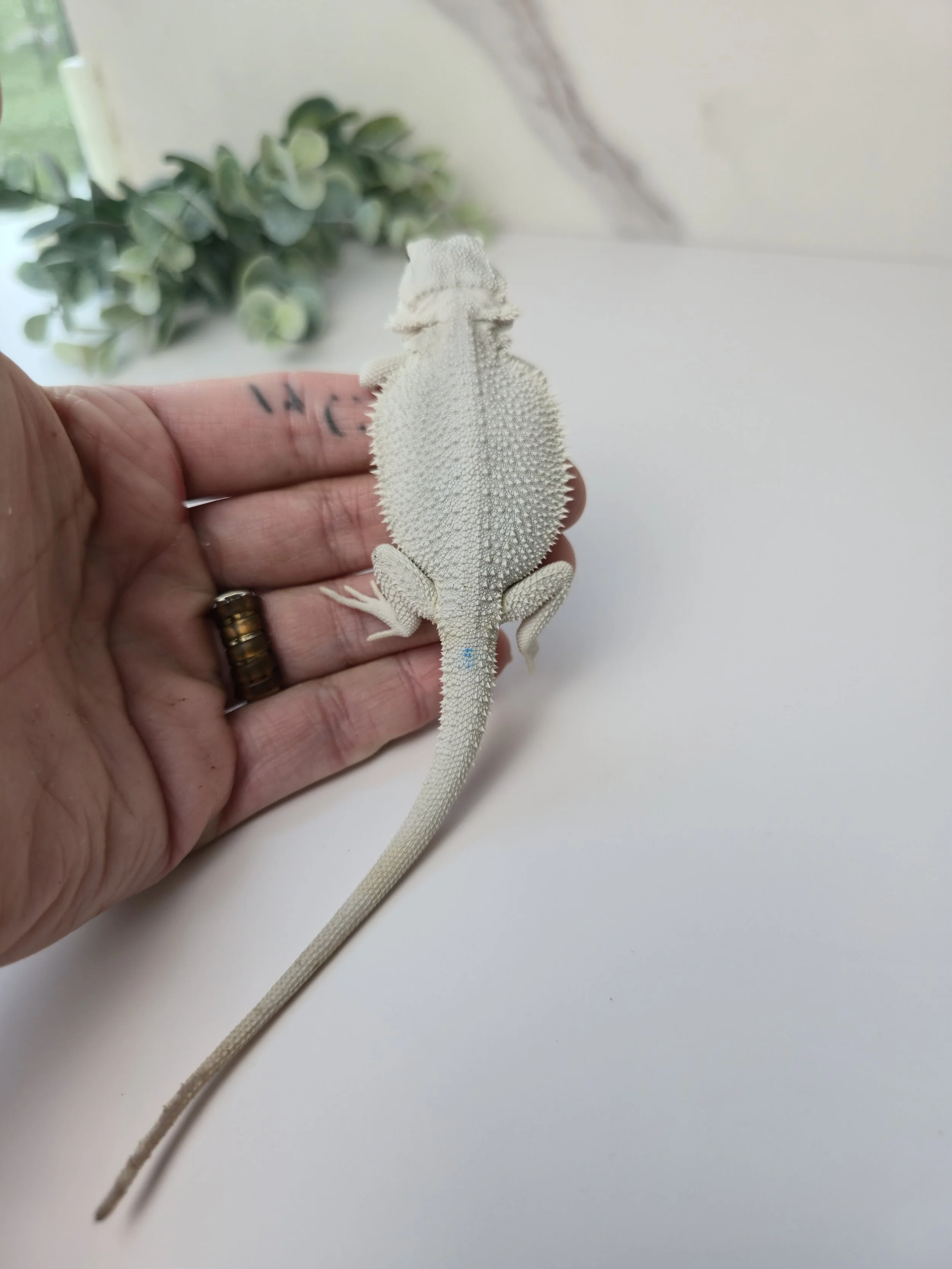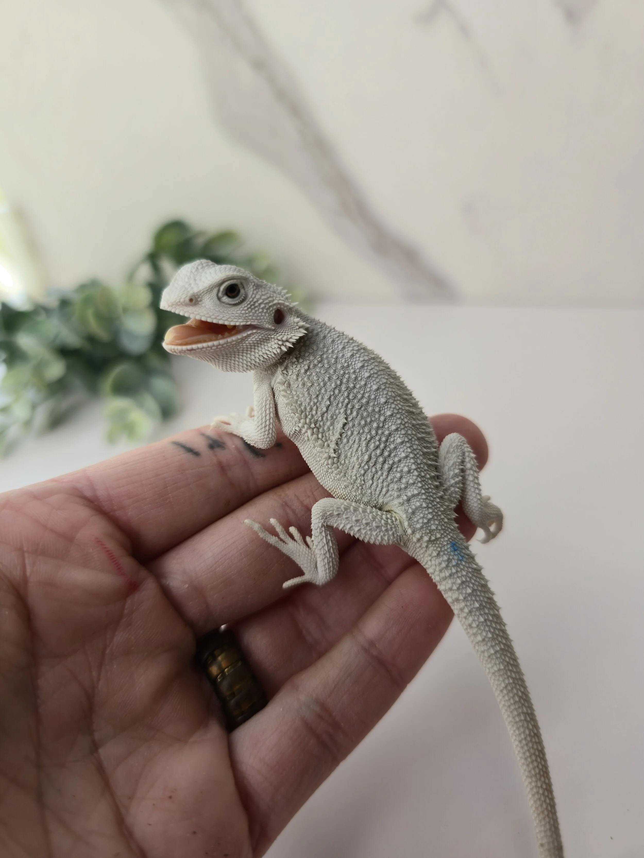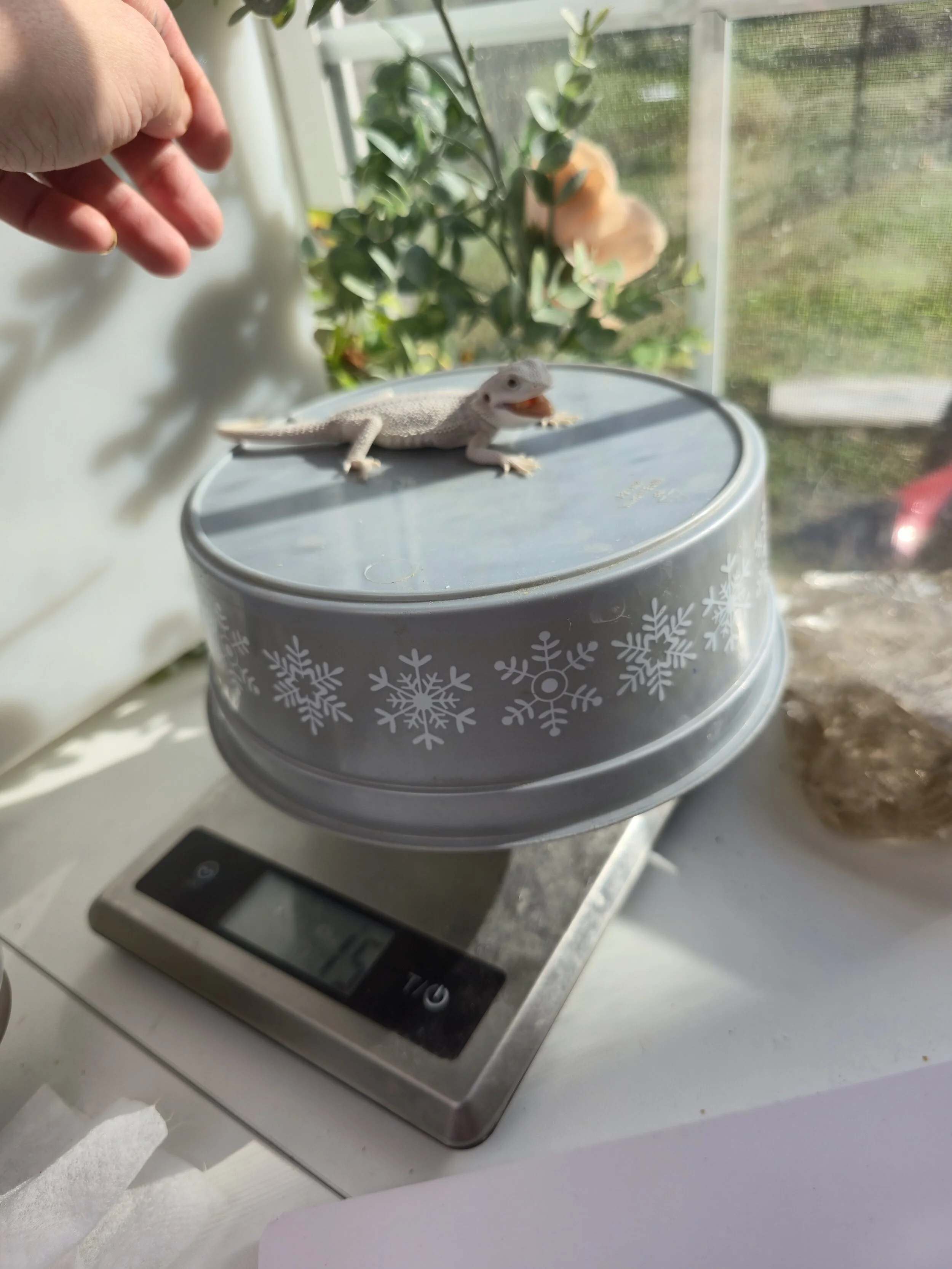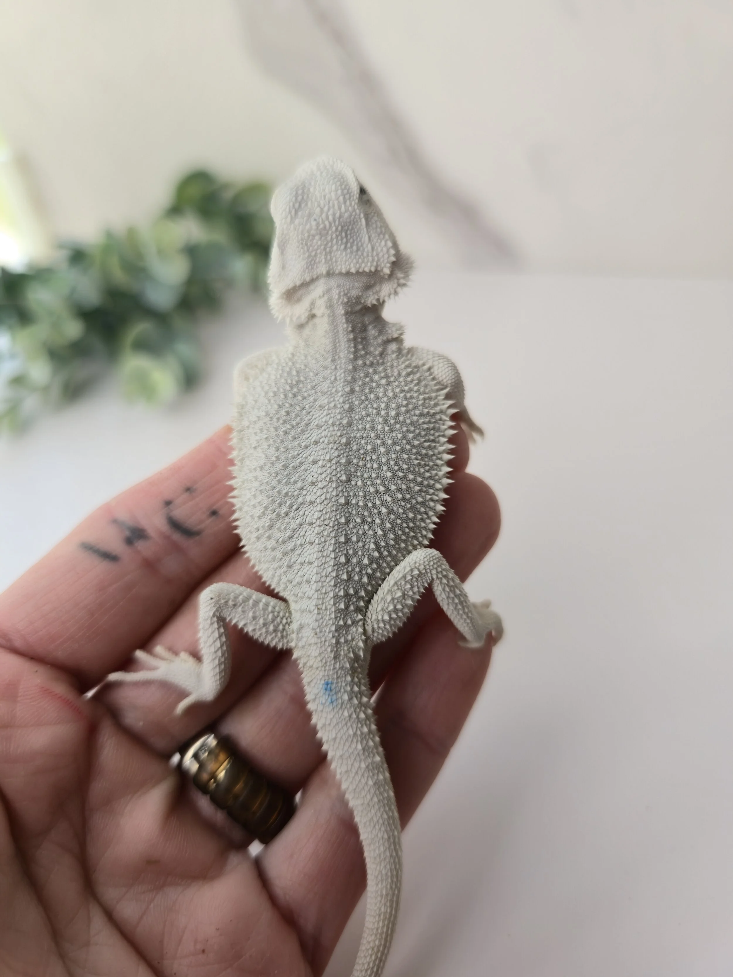 This fireball hatched on 9/8/2025 and is doing great! His tail is minorly nipped so he is discounted for the minor healed injury. He is doing great! Tons of energy!